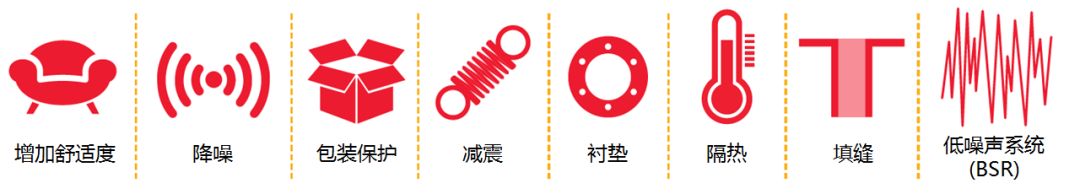 因為這些特色,它被普遍利用在身旁的各個裝備中,有效做隔音的,也有效做減震的,另有隔熱的。如:為了安睡利用的降噪耳機有泡棉,為了增添溫馨度的坐墊有泡棉,就連辦公室的隔音墻也有泡棉......
