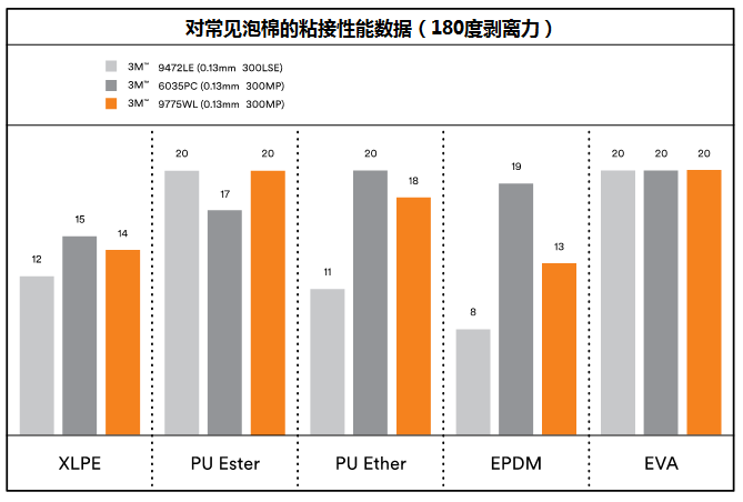 泡棉粘接計劃很是龐雜,在挑選膠帶的時辰須要斟酌:差別范例的泡棉、差別范例的利用情況、和差別的被粘物。3M?完全的膠帶產物線和為泡棉粘接開辟的膠系可以或許贊助設想者們簡化任務,知足終端用戶對泡棉粘接的利用須要。